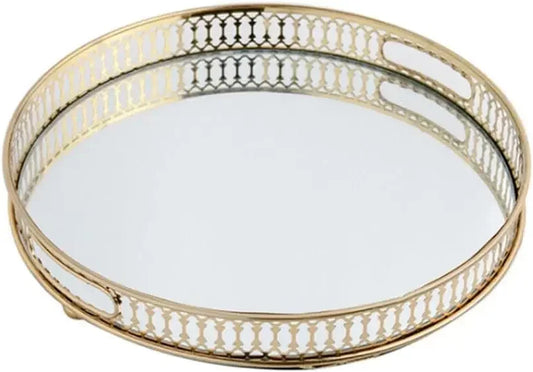 Mirror Tray, 32 cm Tray, Stones, Metal Decorative Tray, Candle Storage Organiser, Gold, Round Mirrored Tray for Birthdays