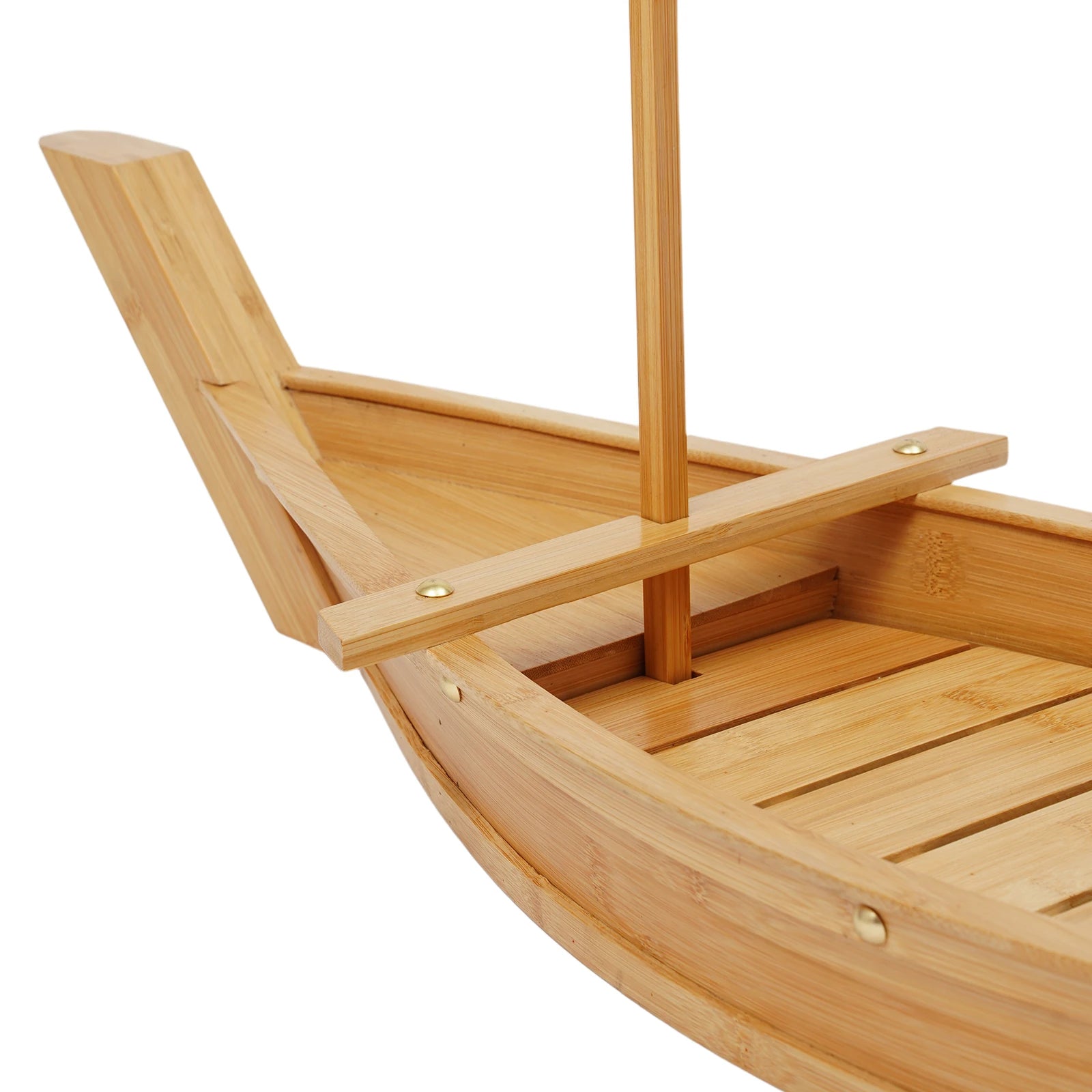 Bamboo Sushi Boat Serving Tray with Dry Ice Smoker, 31.5 Inch Elegant Wooden Platter for Sashimi Appetizer Party