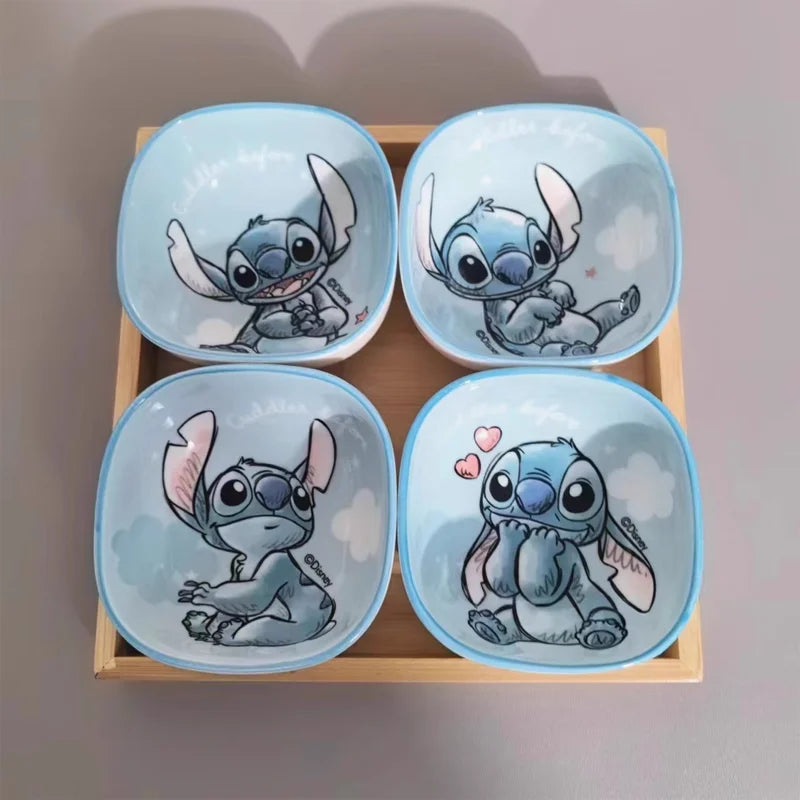 Cute Cartoon Stitch Anime Peripheral Japanese Square Tableware Snacks Dipping Dishes Kitchen Supplies Square Ceramic Bowls Gifts