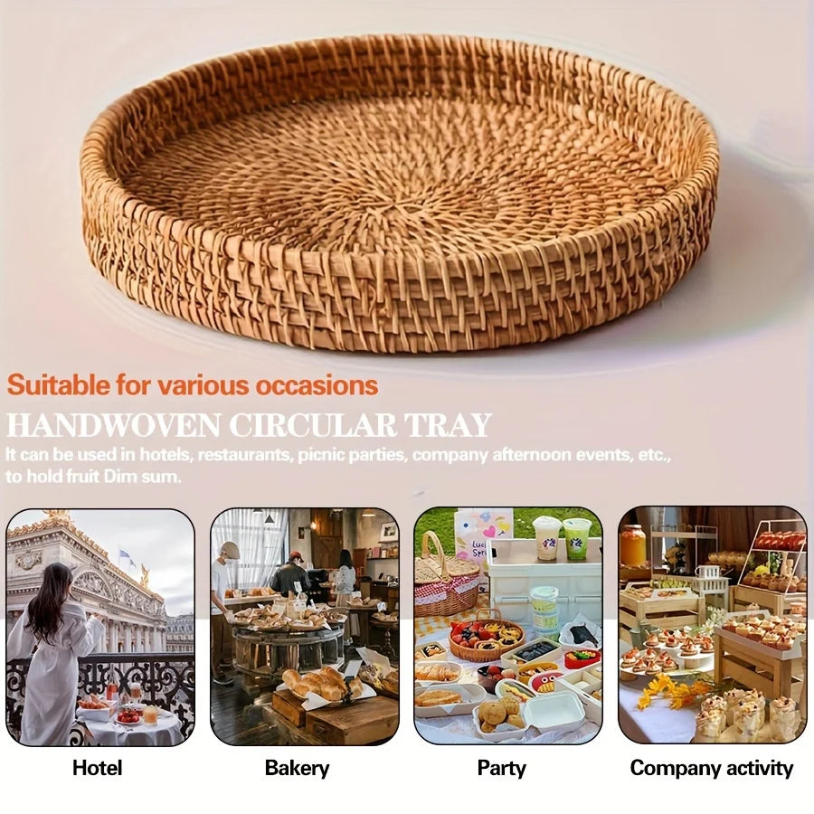 Hand-woven Japanese Bread Basket Steamed Bun Fruit Basket Living Room Household Round Tray Storage Basket