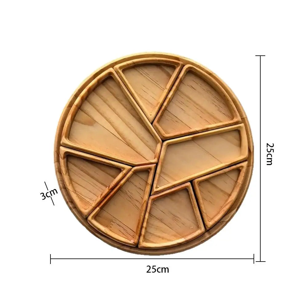Japanese Divided Wood Serving Tray Fruit Plate Snack Dessert Platter Flexible Storage For Fruits, Nuts, Meats, Dips