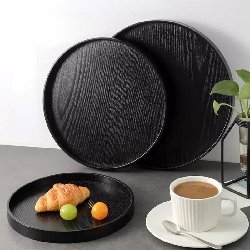 Japanese Kitchen Storage Tray Household Wooden Tea Tray Home Decoration Cosmetic Storage Tray Coffee Snack Tray Bread Round Tray