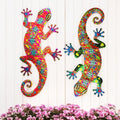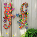 Metal Art Gecko Wall Decor Vibrant Iron Art Lizard Sculptures Gecko Hanging Ornament for Outdoor Home Office Yard Garden Wedding