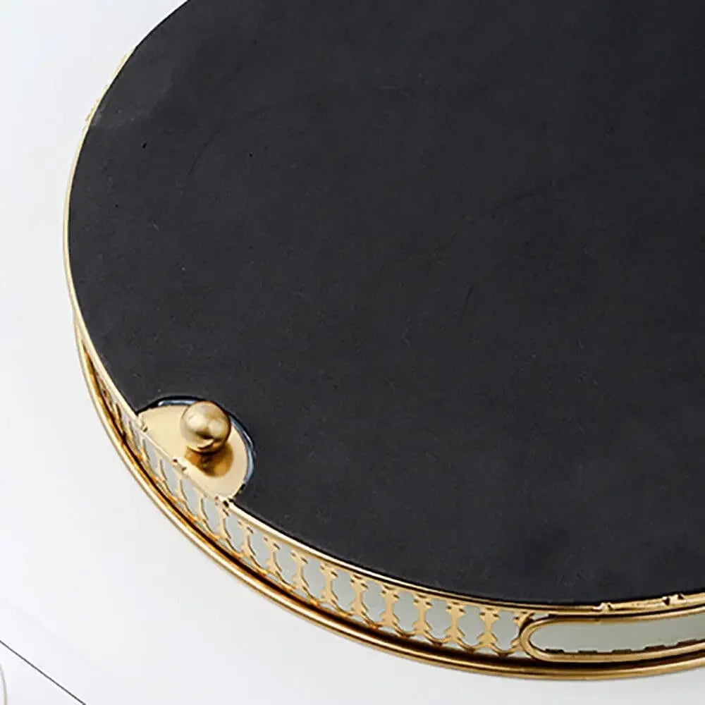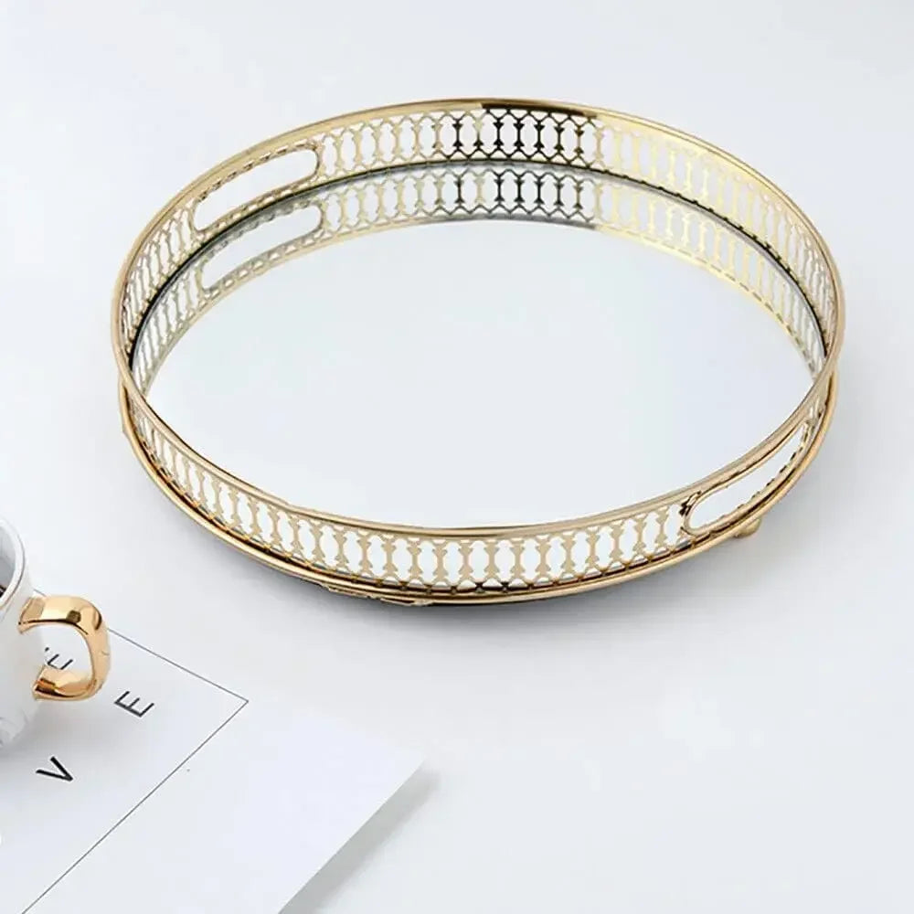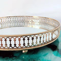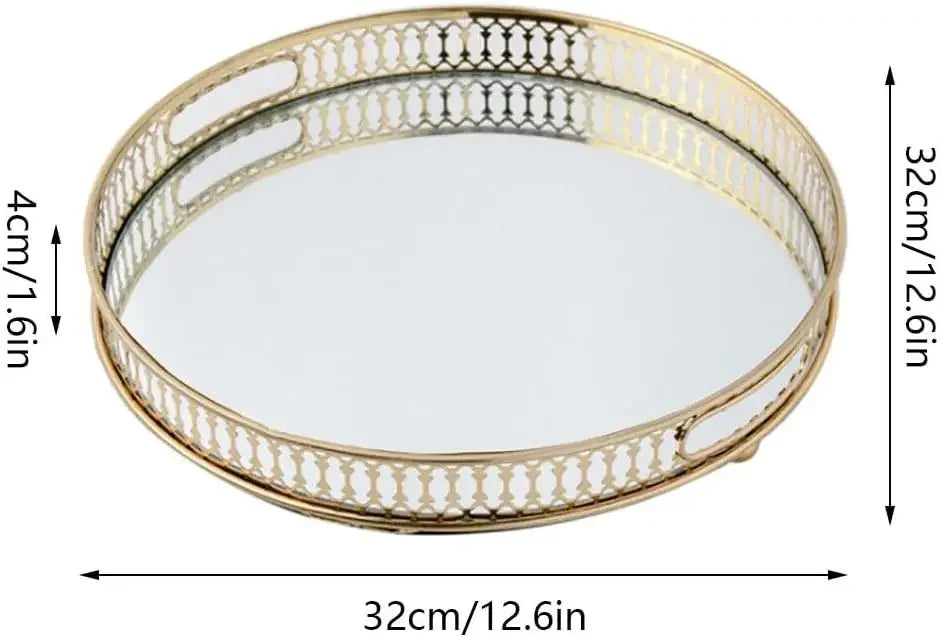 Mirror Tray, 32 cm Tray, Stones, Metal Decorative Tray, Candle Storage Organiser, Gold, Round Mirrored Tray for Birthdays