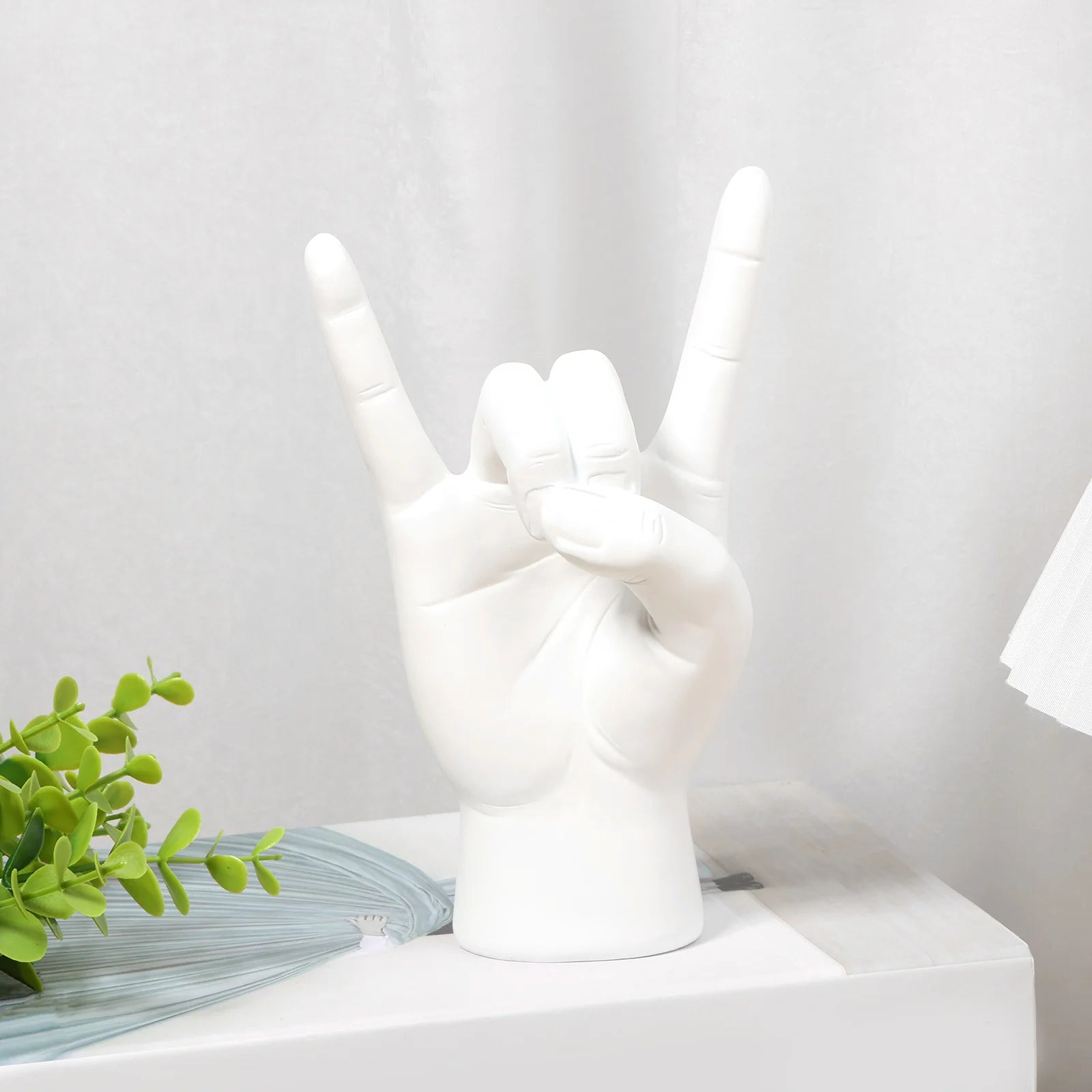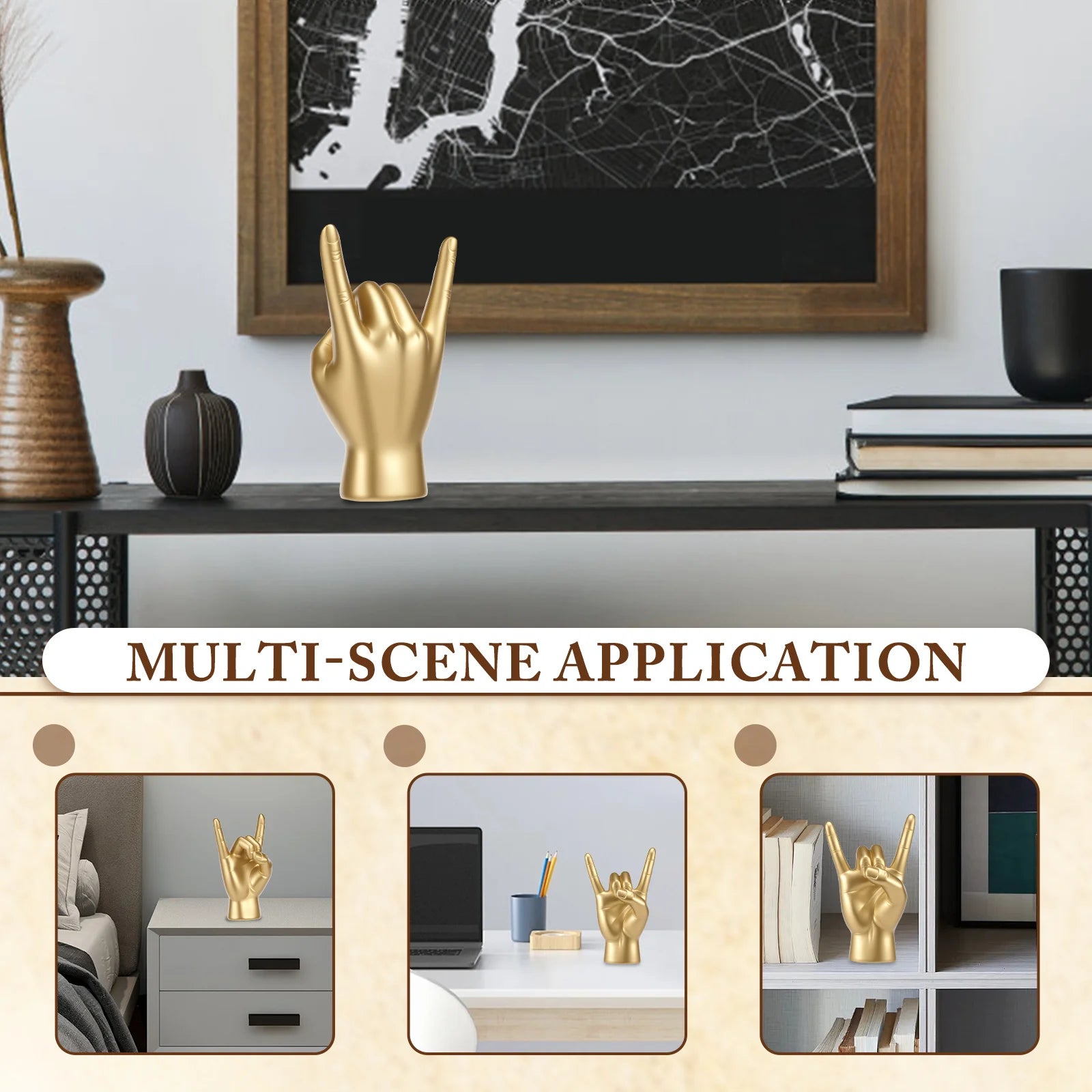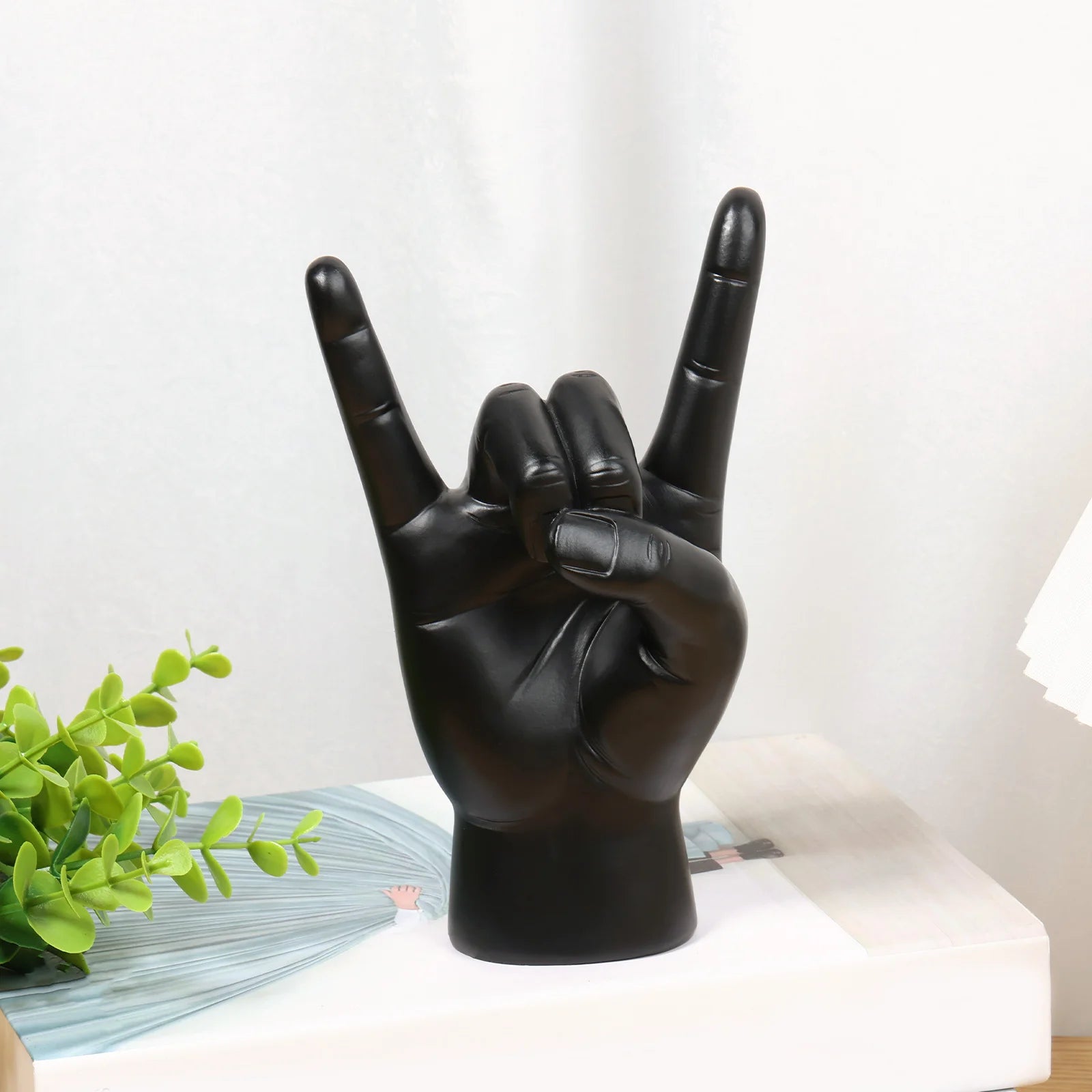 Resin Rock and Roll Gesture Hand Figurines Devil Horns Sculpture Home Decoration Accessories Shelf Tabletop Decor Pop Art