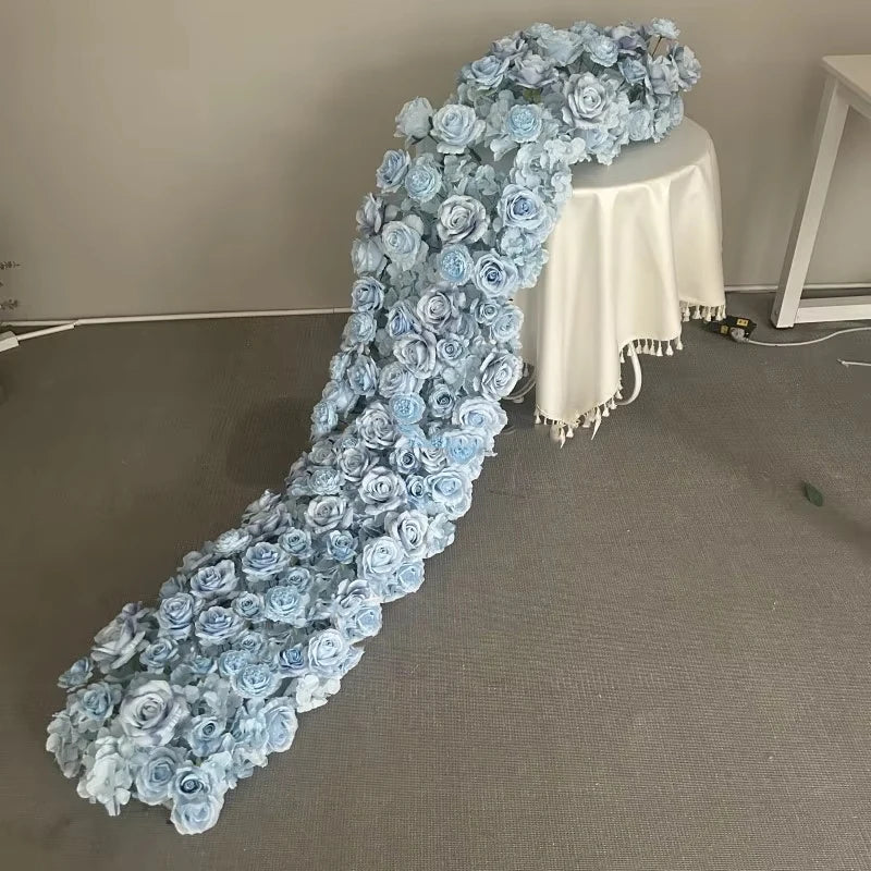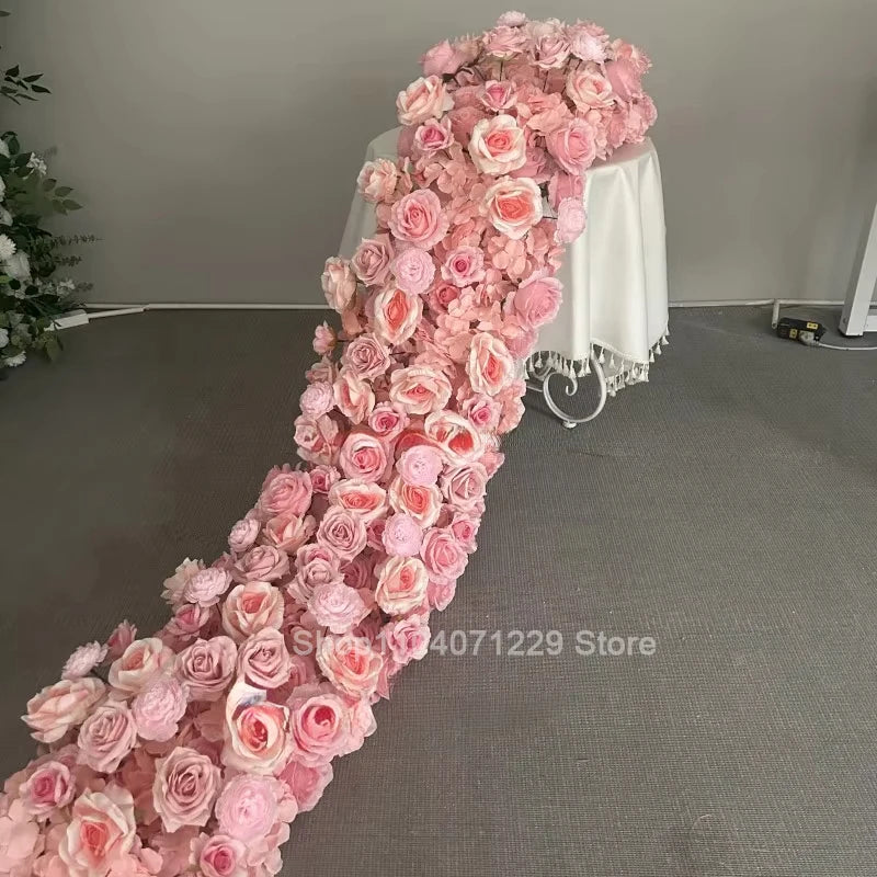 Romantic Rose Hydrangea Flower Row Table Sofa Runner Decor Wedding Backdrop Arch Frame Window Display Banquet Party Event Props