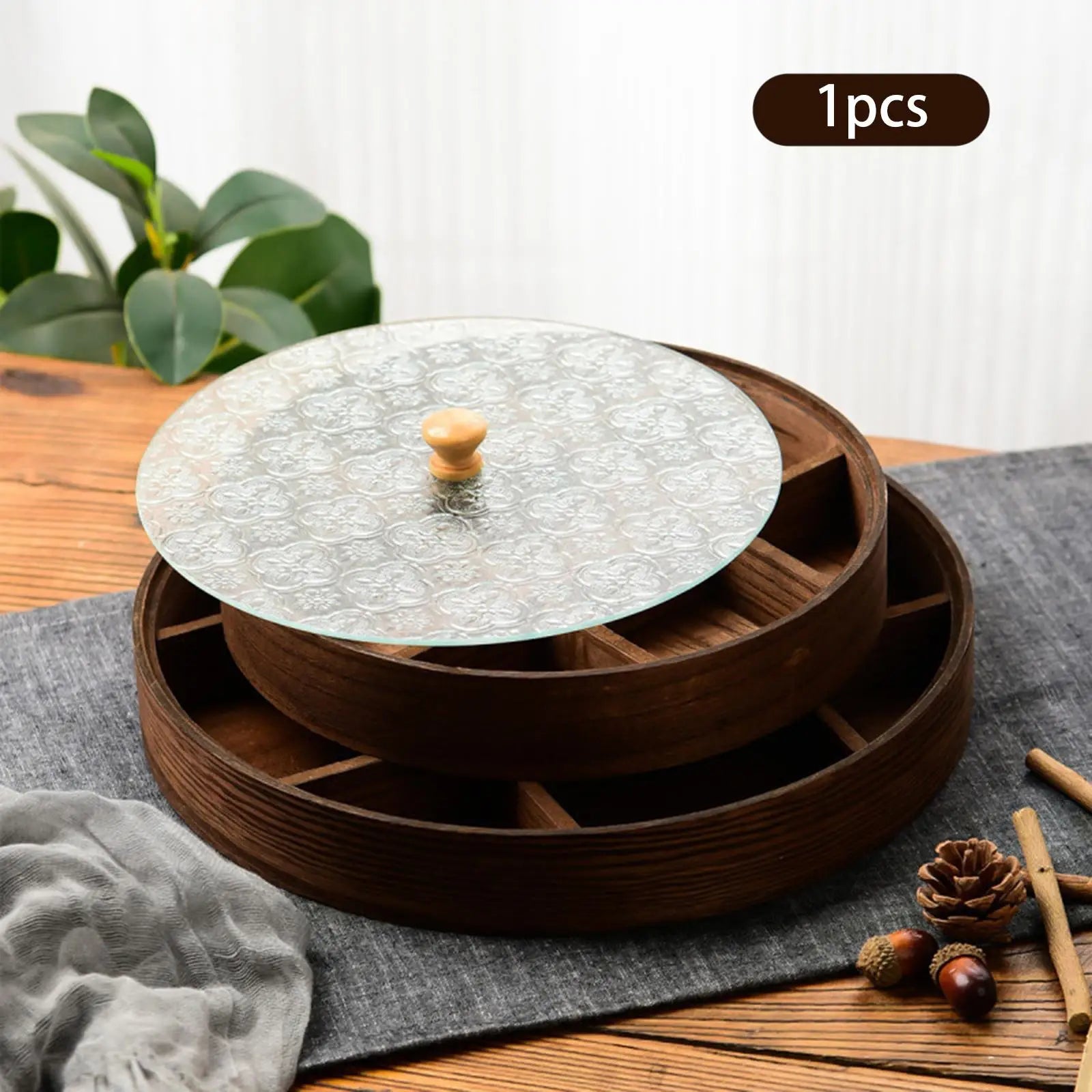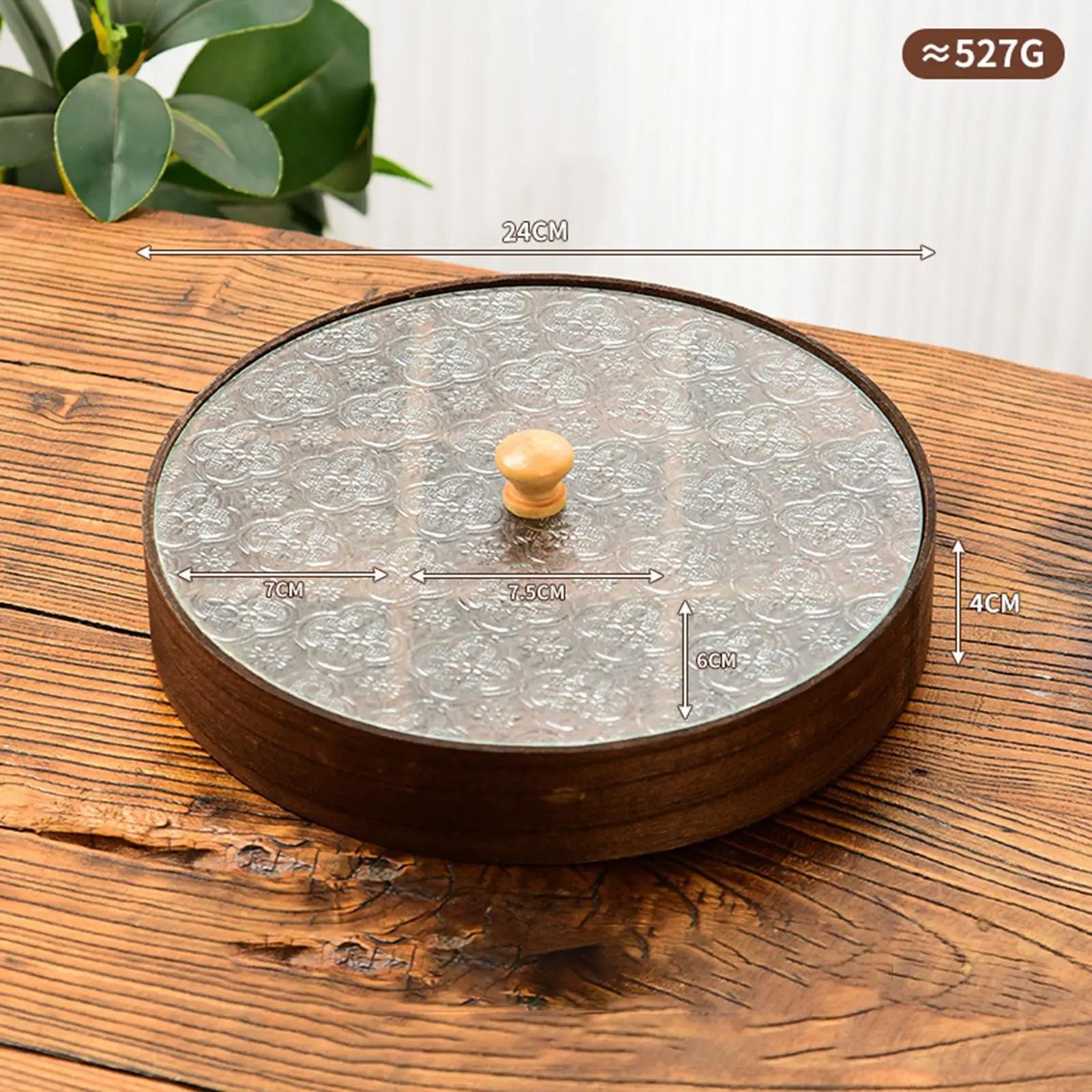 Round Divided Serving Tray with Compartments And Glass Lid Snack Platter Food Organizer for Candy Nuts Party Favors