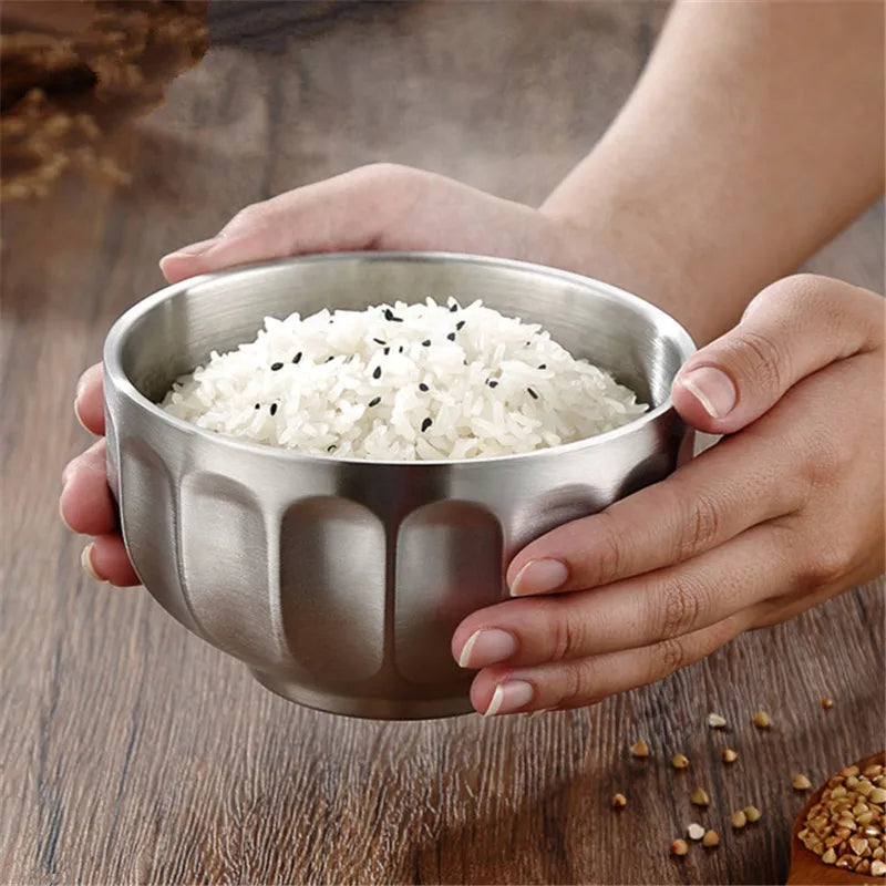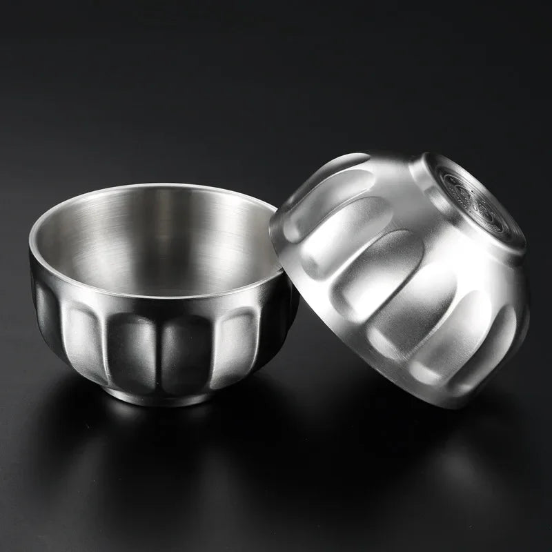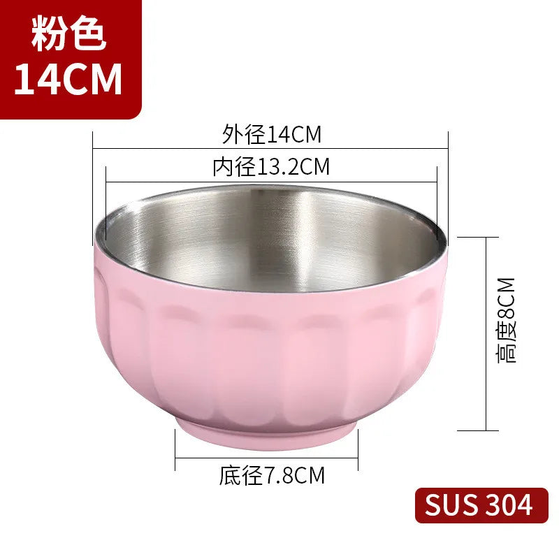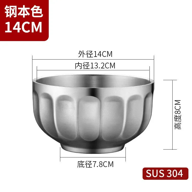 Round Stainless Steel Double Wall Bowl Insulated Ramen Fruit Soup Salad Bowls Kitchen Tableware Non-slip Bottom Food Container